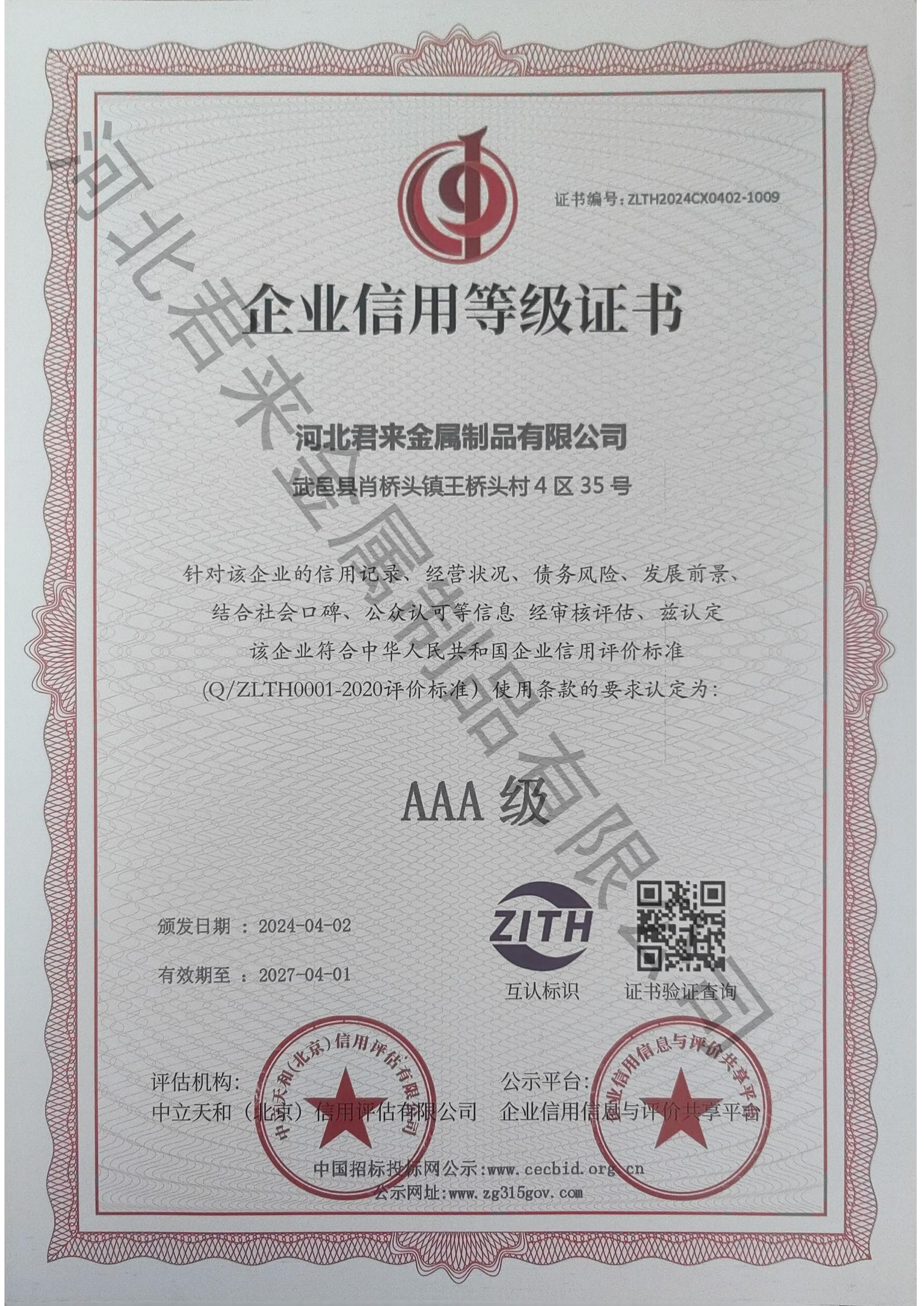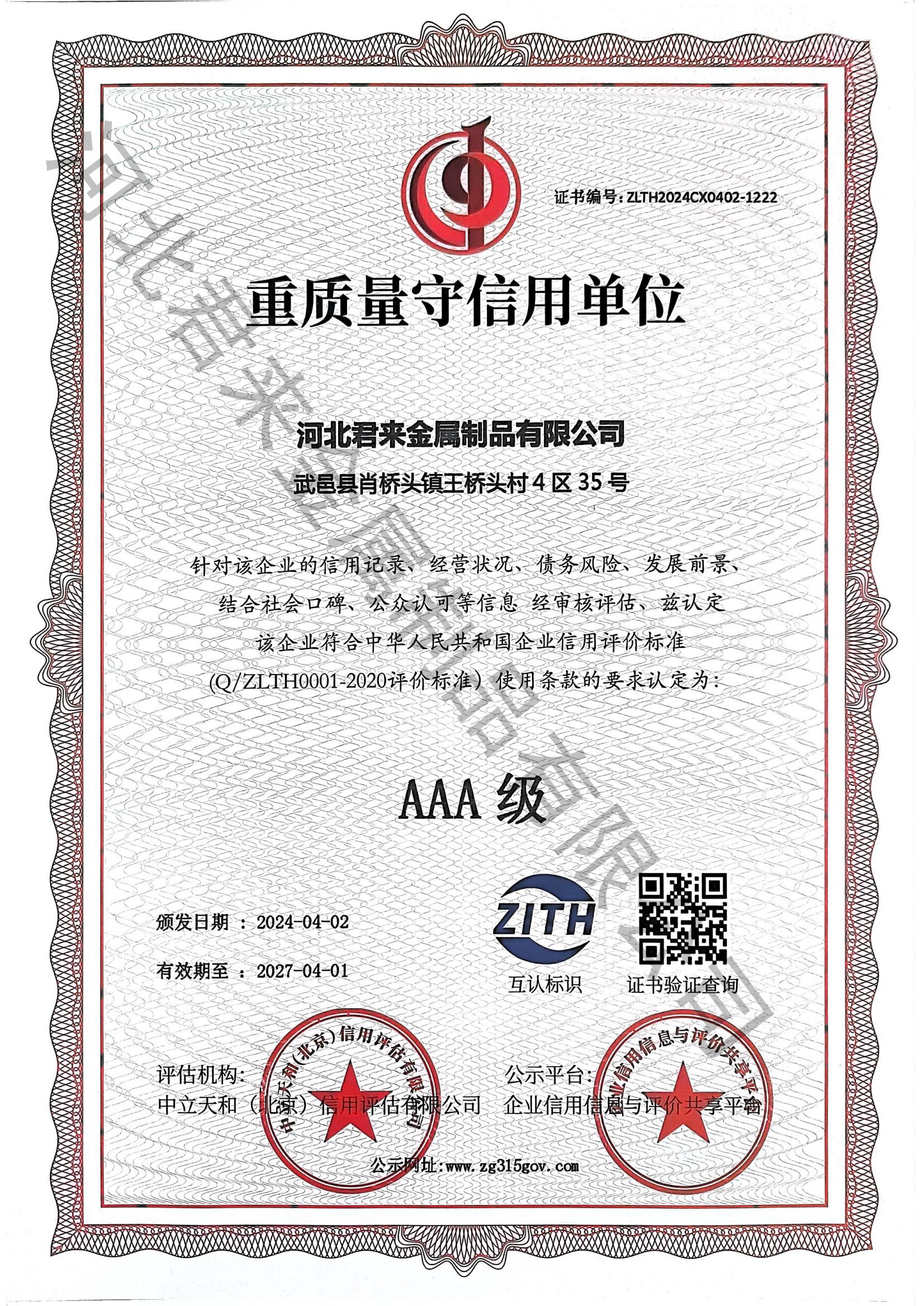 企業信用評價AAA級信用企業